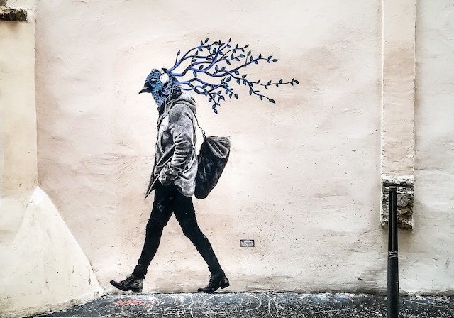 A échelle humaine, ces êtres oniriques arpentent l'espace urbain, s'installent sur les bancs, s'appuient contre un réverbère. De leur chair et de leur plumes émergent des branchages, des feuilles, des fleurs en clairs obscurs. Comme si dans leurs veines coulait la sève. Bien que singulièrement poétiques, ces passants hybrides sont quelque peu dérangeants. Parvati a toujours été fascinée par la relation qui existe entre le beau – au sens philosophique – et l'étrange.