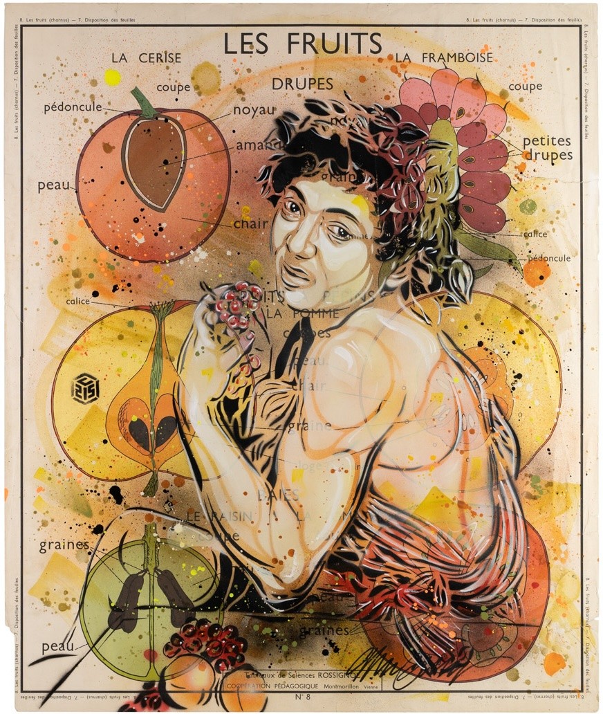 Bacchus C215 Année de réalisation 2021 Dimensions 90x75 cm Oeuvre originale Oeuvre originale Technique Bombe aérosol et pochoir sur papier Technique Papier 4 300 euros Ajouter au panier