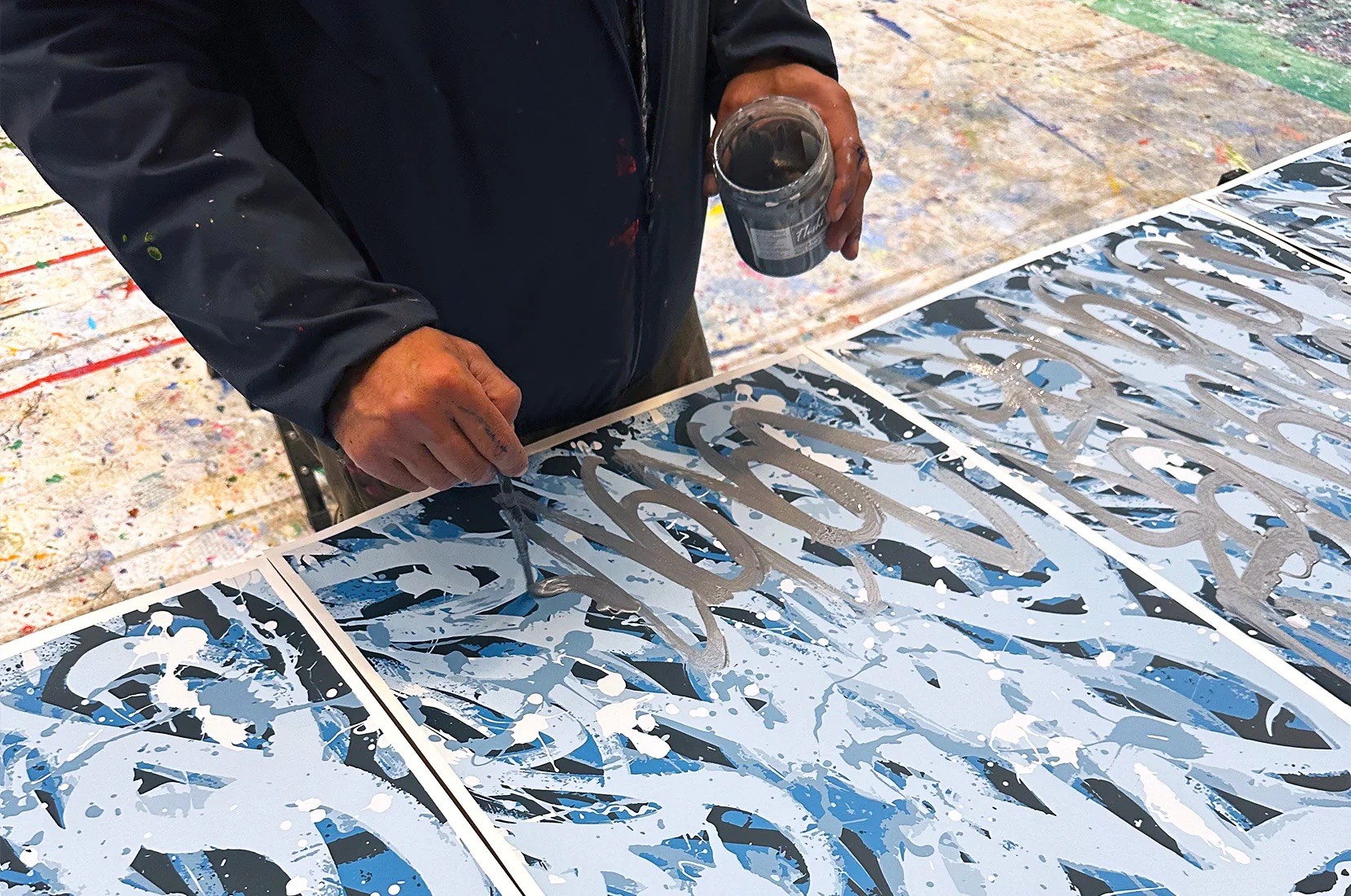 - Sérigraphie en dix couleurs et peinture acrylique sur papier Finition manuelle